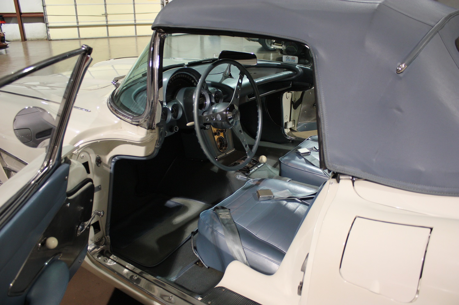 Snowcrest White with Frost Blue interior and top.